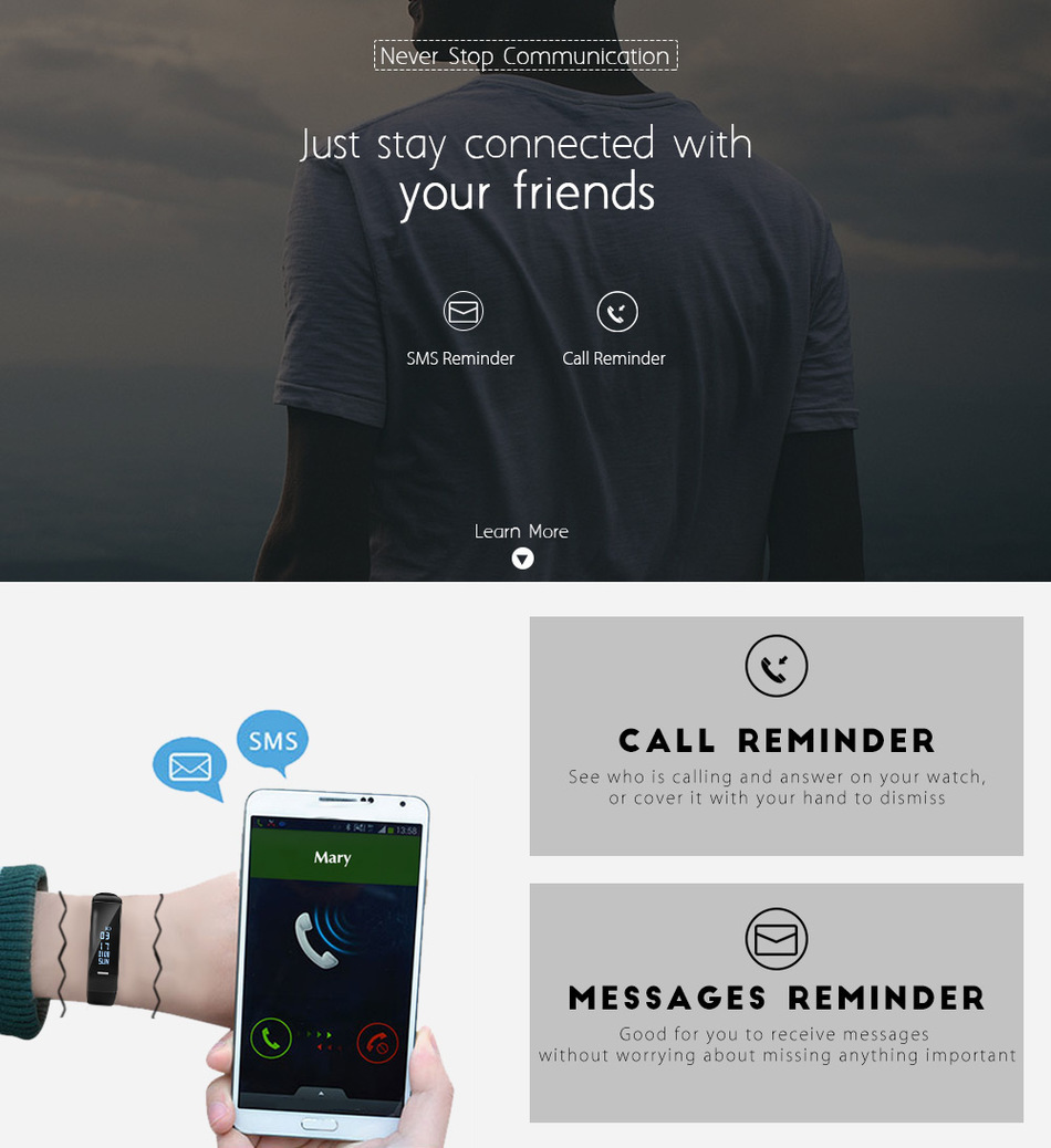 The P1 is an all-in-one smart wristband with heart rate, blood oxygen and blood pressure monitor in one place. Not only care about your health by the social contact, this bracelet contains the functions of call reminder, message reminder, etc. Full of features that help you stay active, motivated, and connected, P1 is designed for the special you.